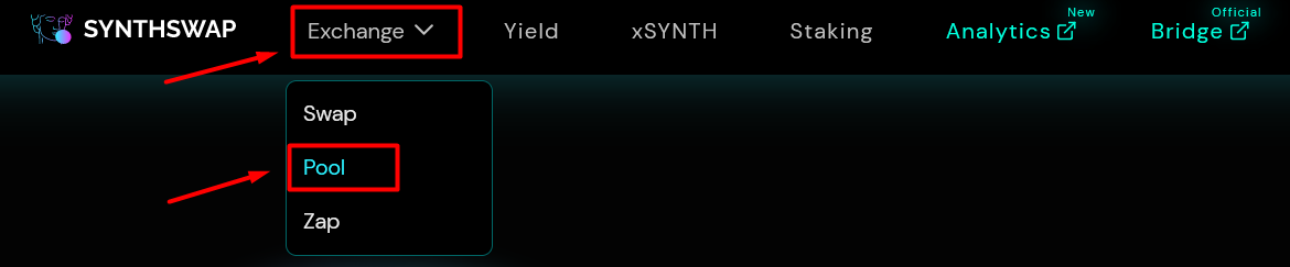 ## 1. Go to Exchange / Pool