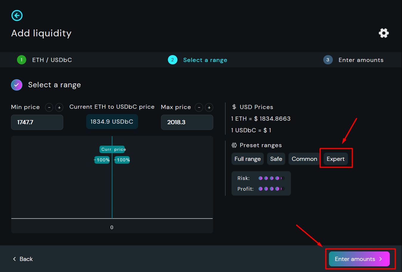 For this guide, we will choose the "Expert" range. Once selected, click on Enter Amounts to Continue to the next step.